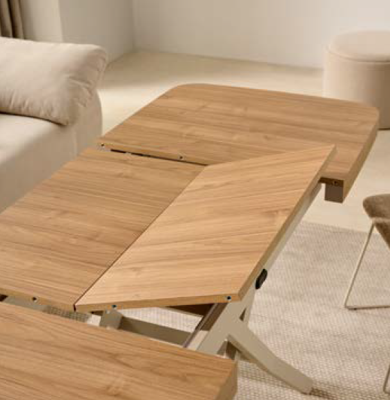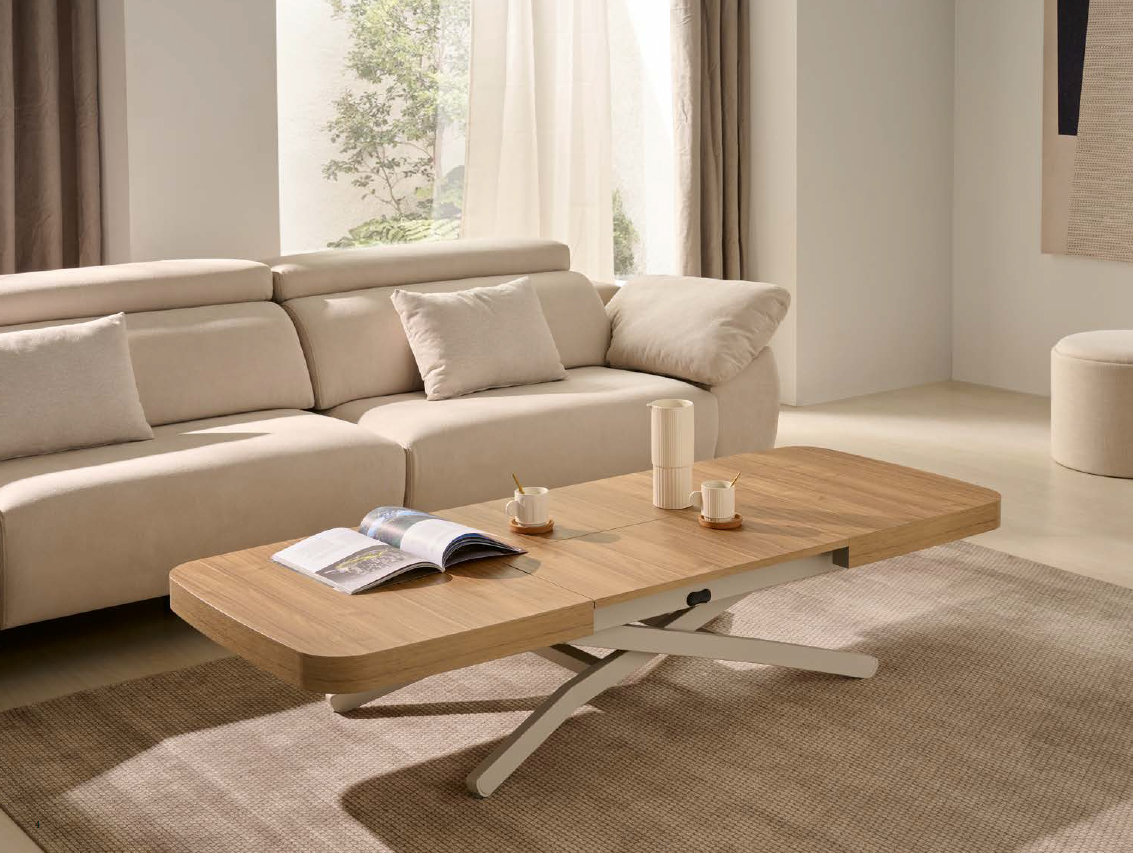 Mesa centro elevable motorizada. Convertible en mesa comedor.